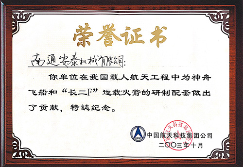 航天事業榮譽證書