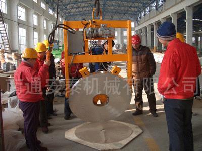 該應用實例吸吊重量400公斤,可吸吊直徑900-1700鋁卷,可將鋁卷從垂直狀吸吊后翻轉至水平狀,亦可從水平面吸吊后翻轉至垂直狀。